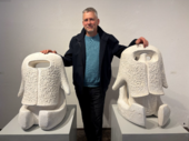 Am Sonntag, dem 14. September 2025, 15 bis 18 Uhr, ist der Bildhauer und Plastiker Frank Schauseil (auf dem Foto mit seinen „Stillen Begleitern“ bei der Ausstellungseröffnung in der Georado Kunstinitiative Dorfhain / Foto: Annett Stoy) während des Tages der offenen Hinterhöfe persönlich in der Bischofswerdaer Carl-Lohse-Galerie, Dresdener Straße 1, anwesend.