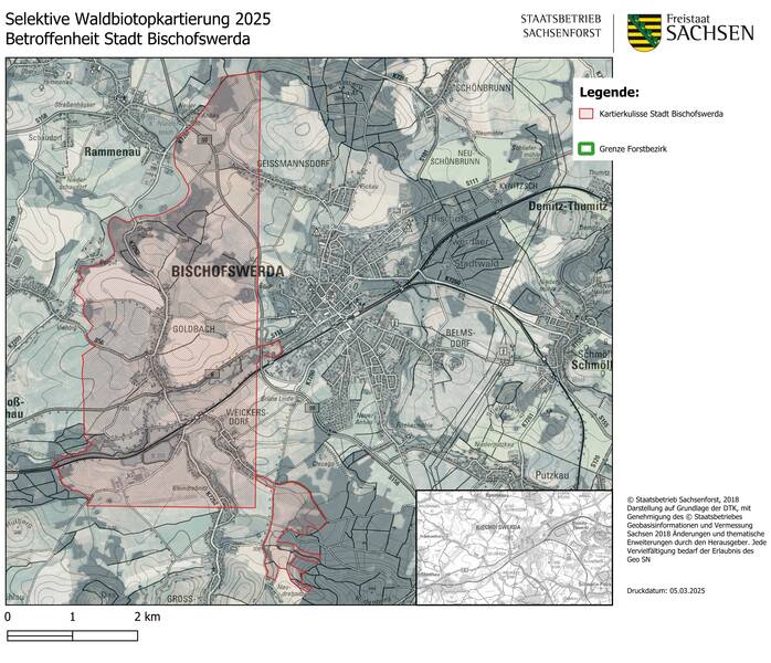 Für die im Jahr 2025 durchzuführende Aktualisierung der Waldbiotopkartierung im Bereich betroffener Gemeinden im Landkreis Bautzen und Görlitz hat der Staatsbetrieb Sachsenforst Büros mit den notwendigen Untersuchungen beauftragt.