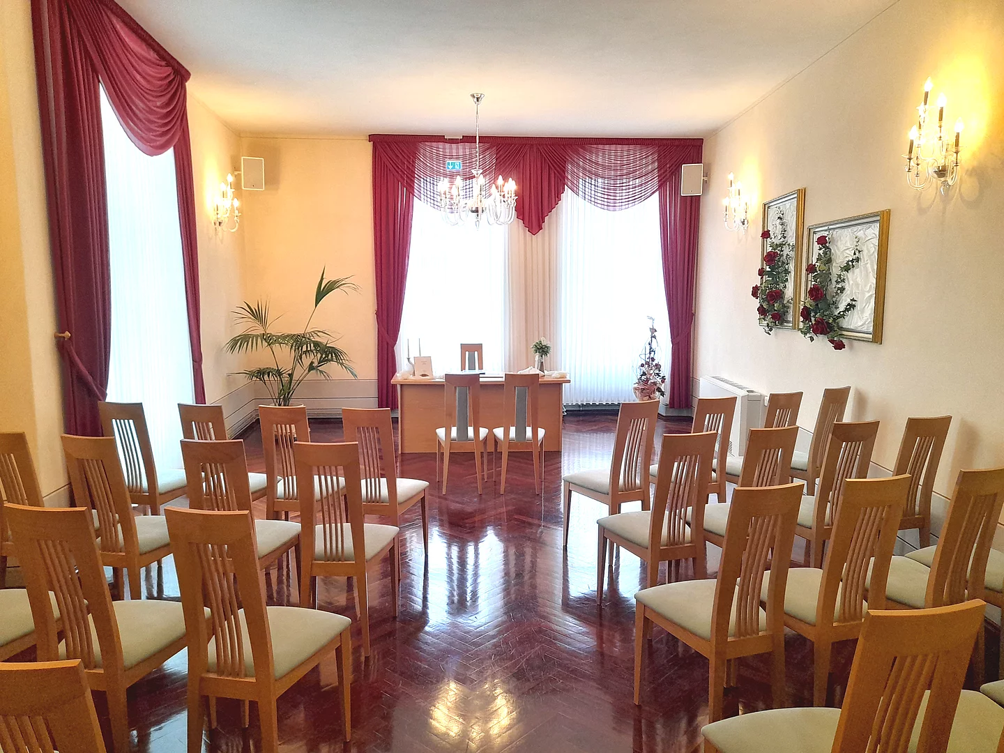 Für größere Hochzeitsgesellschaften oder ein besonders festliches Flair steht Ihnen der barrierefreie Große Saal zur Verfügung. Helle Räume, ausreichend Platz und ein würdiger Rahmen machen diesen Ort ideal für eine Trauung mit vielen Gästen.