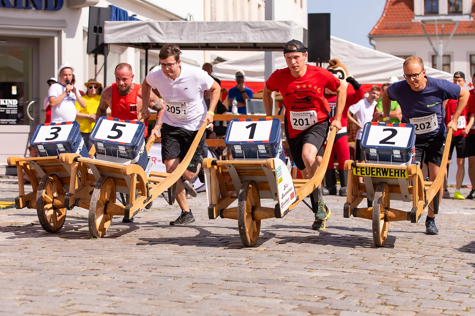 Noch nicht olympisch, aber überregional bekannt, ist das Schiebock-Rennen, das 1994 aus einer Idee des damaligen "Huggelvereins" entstand. Mit dem traditionellen Holzkarren geht es über das Kopfsteinpflaster des historischen Altmarktes. Auf dem ca. 300 m langen Parcours messen sich jährlich Läufer aus nah und fern.