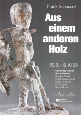 Ab Freitag, den 22. August 2025, 19 Uhr, wird in den Räumen der Carl-Lohse-Galerie Bischofswerda, Dresdner Straße 1, eine neue Wechselausstellung zu sehen sein. Unter dem Titel „Aus einem anderen Holz“ zeigt der Dresdner Frank Schauseil hauptsächlich Skulpturen und Plastiken.