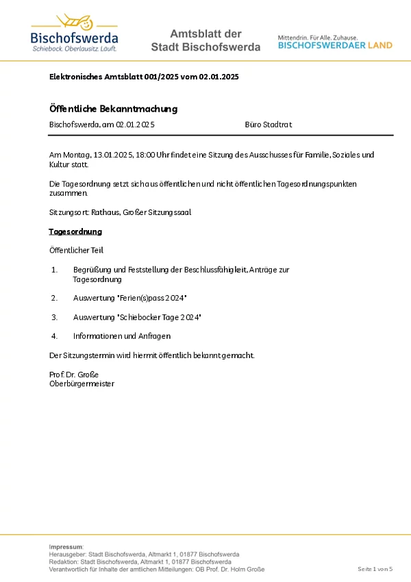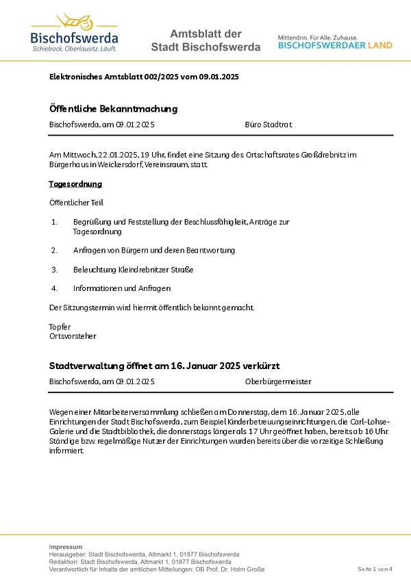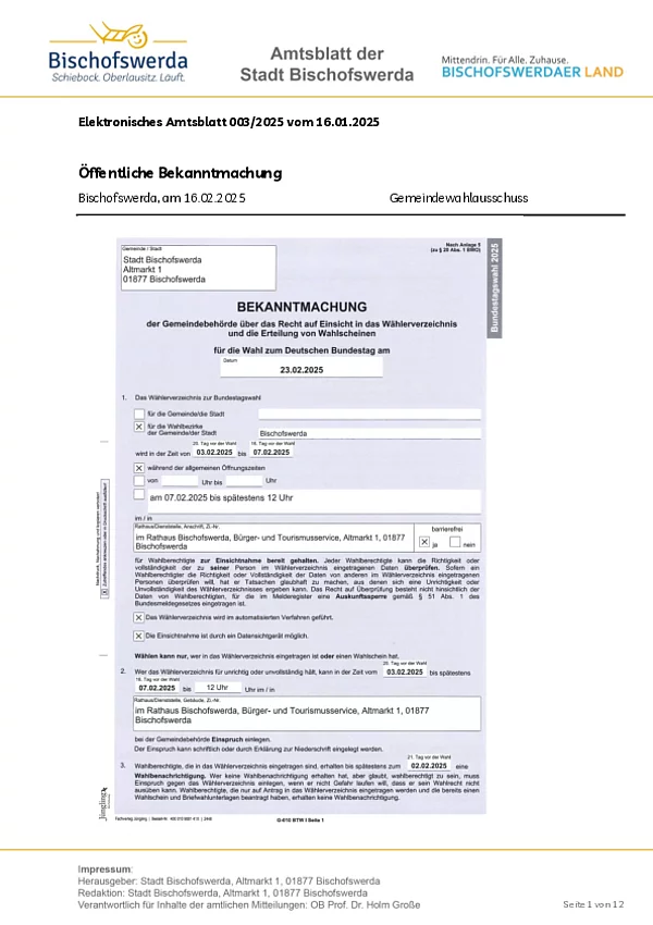 Elektronisches Amtsblatt der Großen Kreisstadt Bischofswerda