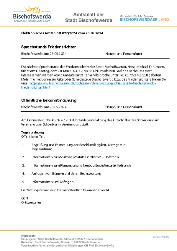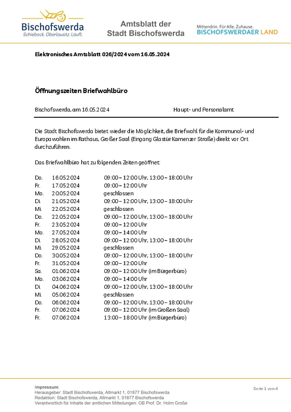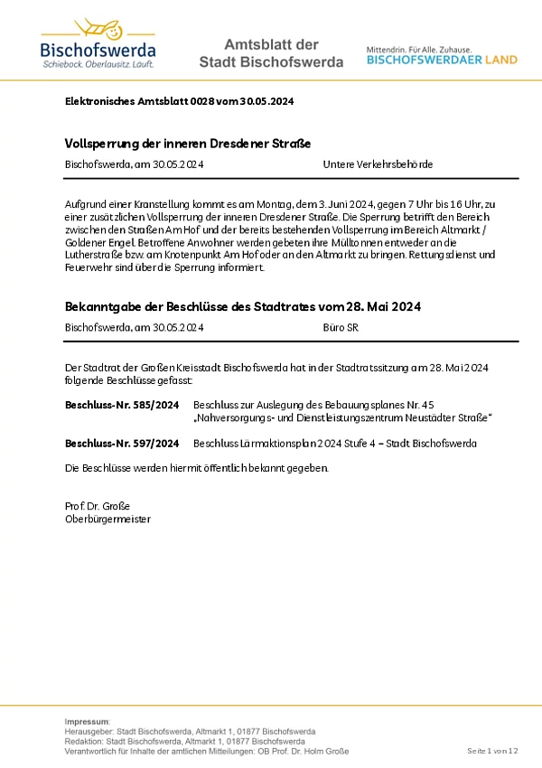 Elektronisches Amtsblatt der Großen Kreisstadt Bischofswerda