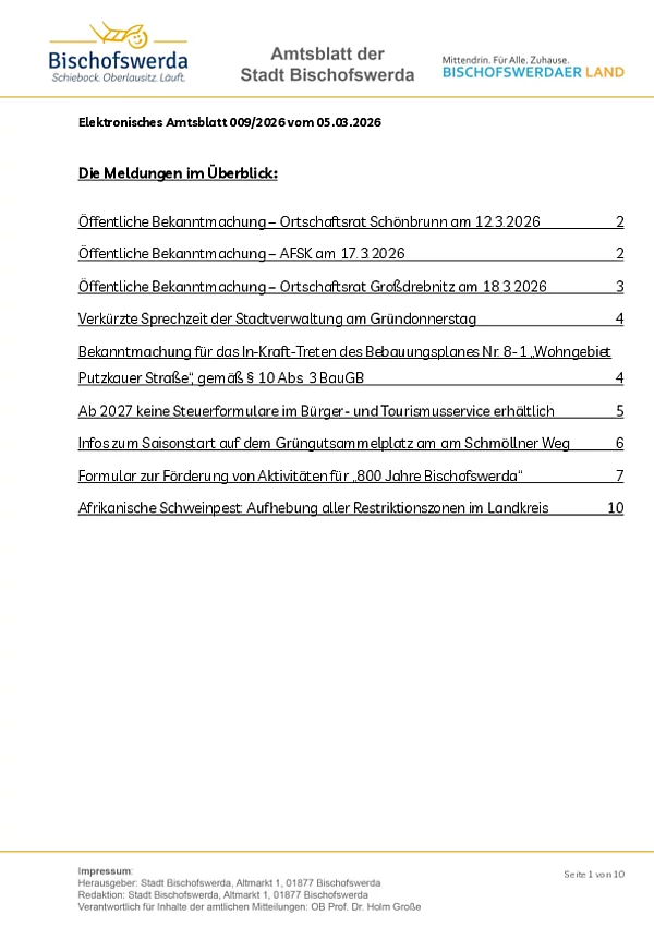 Elektronisches Amtsblatt der Großen Kreisstadt Bischofswerda