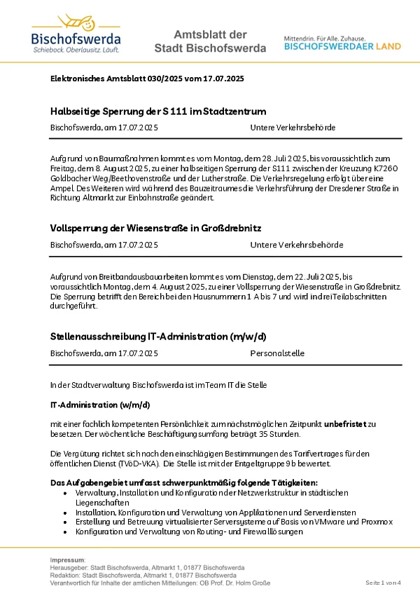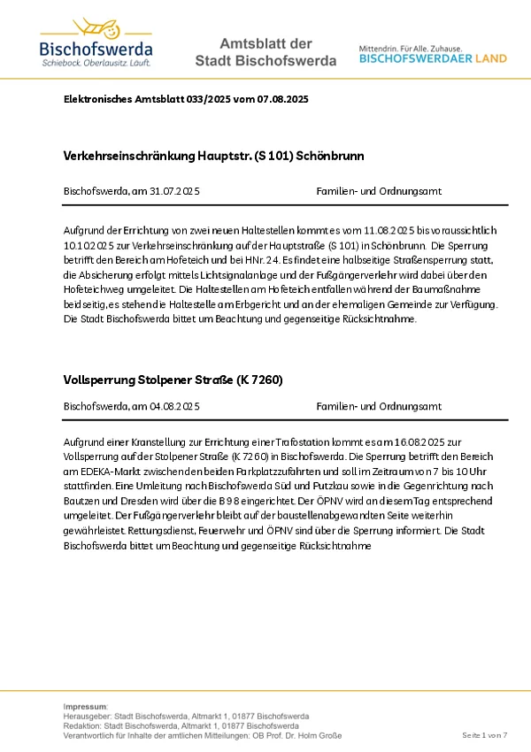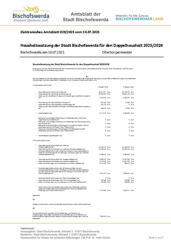 Elektronisches Amtsblatt der Großen Kreisstadt Bischofswerda