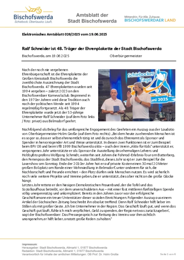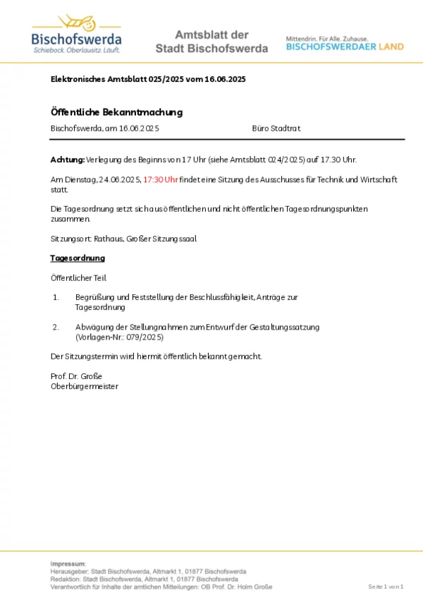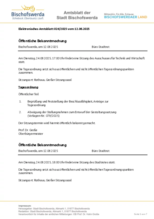 Elektronisches Amtsblatt der Großen Kreisstadt Bischofswerda
