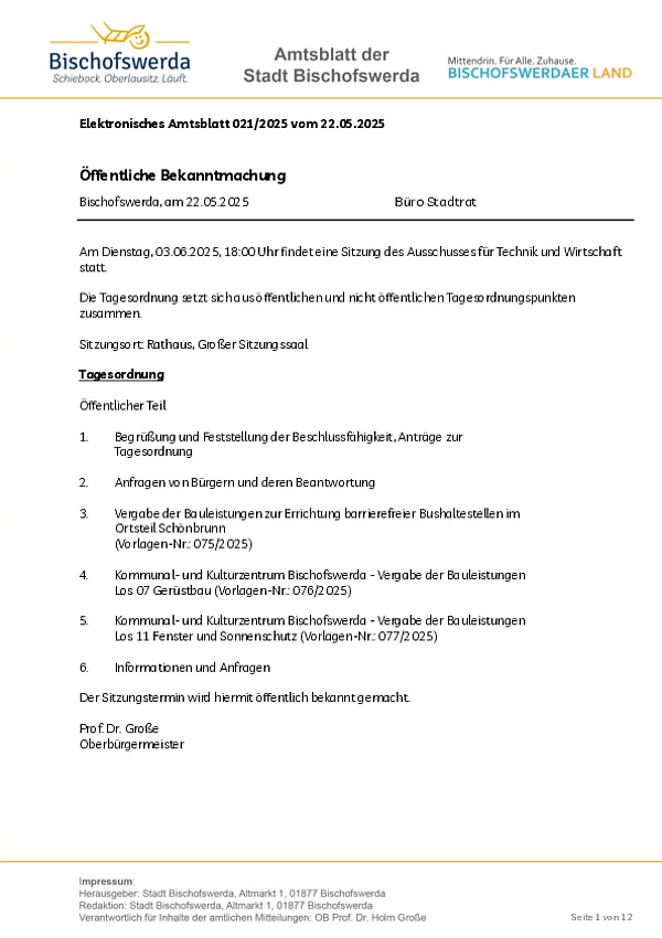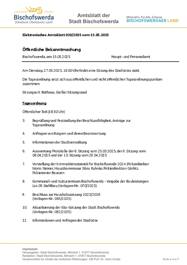 Elektronisches Amtsblatt der Großen Kreisstadt Bischofswerda