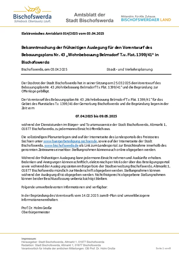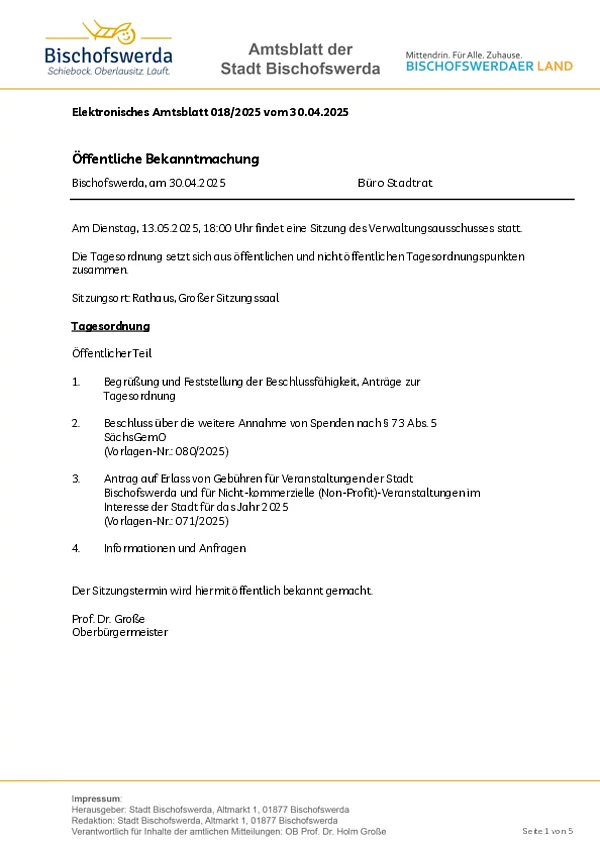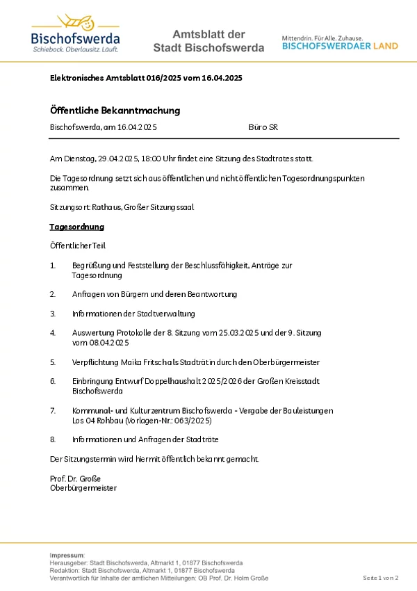 Elektronisches Amtsblatt der Großen Kreisstadt Bischofswerda