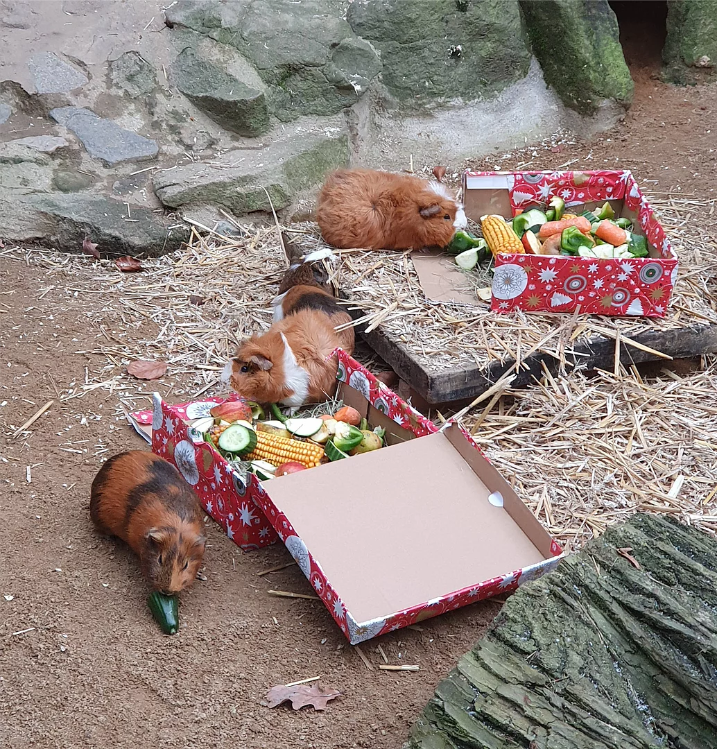 Der Weihnachtsmann verteilt mit den Kindern tierische Geschenke für all unsere Tiere. Für das leibliche Wohl unserer Gäste sorgt der Tierparkförderverein. 11.00 Uhr Puppentheater auf der Erlebnisbühne.