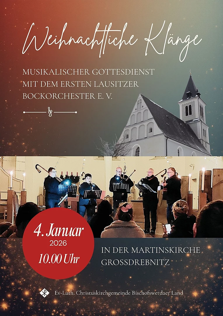 Zu einem Gottesdienst mit besonderem Hörgenuss lädt die Kirchgemeinde am 4. Januar um 10.00 Uhr in die Großdrebnitzer Martinskirche ein.